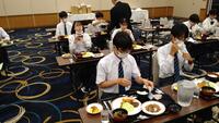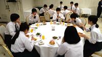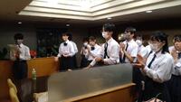 代表生徒が 「平和の誓い」を読み上げ、舞鶴から携えた千羽鶴をお供えし、黙とうを捧げる。