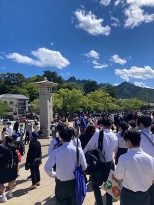 加佐中学校に16:50に到着し、みんな元気に帰宅しました